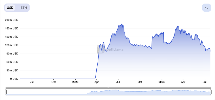 Op het moment van schrijven stond de TVL van het netwerk op het laagste niveau sinds april 2023, op $96 miljoen.