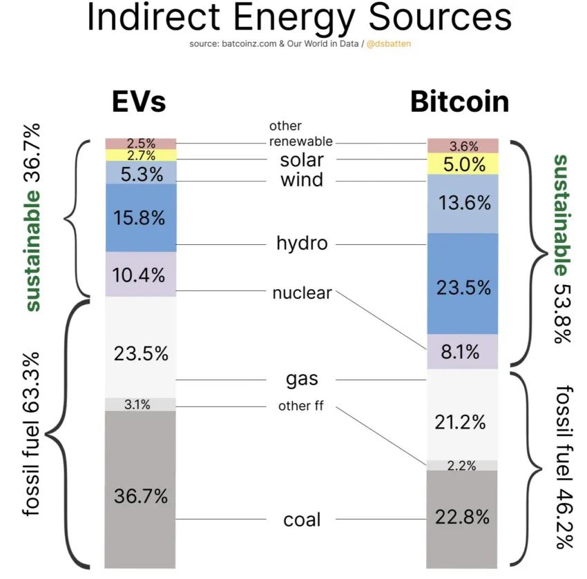 Indirect energy sources; Bitcoin mining vs. electric vehicles. Source: Daniel Batten