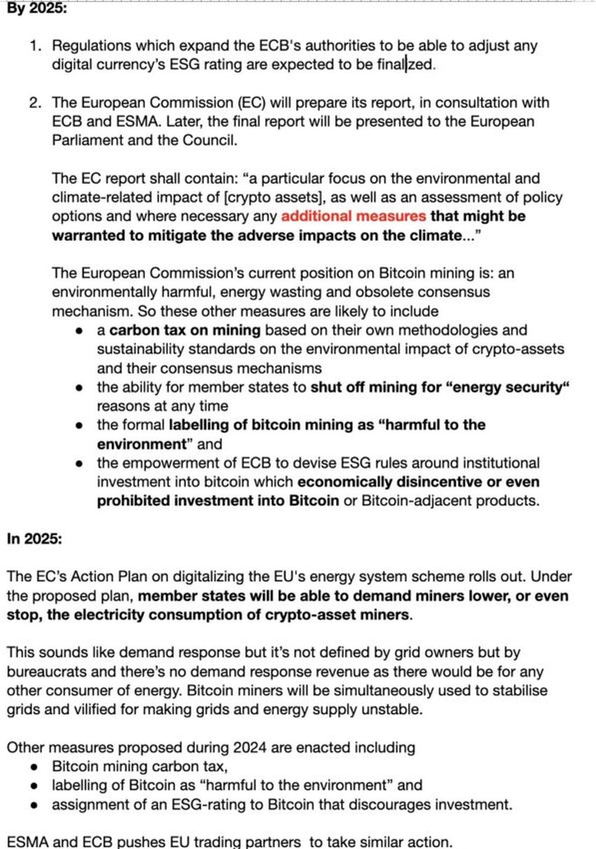 Volgens een geplaatst deel van het rapport maakt het de weg vrij voor een EU Bitcoin mining verbod in 2025.